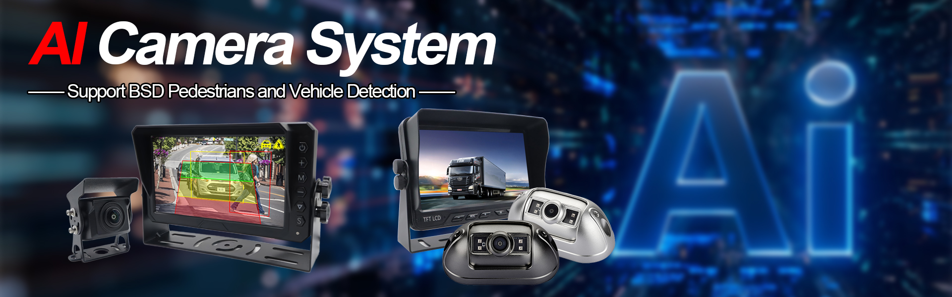 Carleader 10,1 tum fordon BSD Blind Spot Detection Monitoring System inkluderar 1x AI BSD Monitor, 1x Sound and Light Alarm, 1x Front View Camera, 2x Sidos View Camera (vänster och höger), 1x bakre visningskamera, AI -algoritmen är integrerad i monitorn, stöder AI -funktionskalibrering.