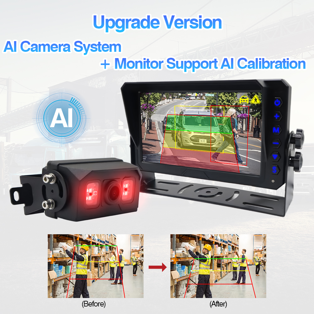 Carleader Nylanserad AI Blind Spot Detection Bakre kamera Inbyggd färgskiftande varningslampa, kamera med inbyggt varningsljus och larmfunktion, kan fungera med normal AHD-monitor. Om du behöver AI-kalibreringsinställning, föreslå att du använder den med vår AI-monitor för att justera kamerans detekteringszonstorlek och andra AI-funktioner.