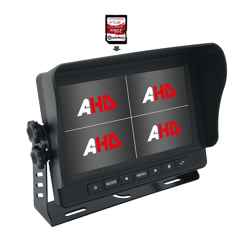 Quad Ahd -skärmar: Våra Quad AHD -skärmar tar fordonssäkerhet till nästa nivå. Dessa system kan visa och spela in fyra videoflöden samtidigt och erbjuder en fullständig surroundvy. Med visningslägen med flera kanaler och oberoende arkivering av fil kan förare övervaka baksidan / sidan av deras fordon med lätthet.