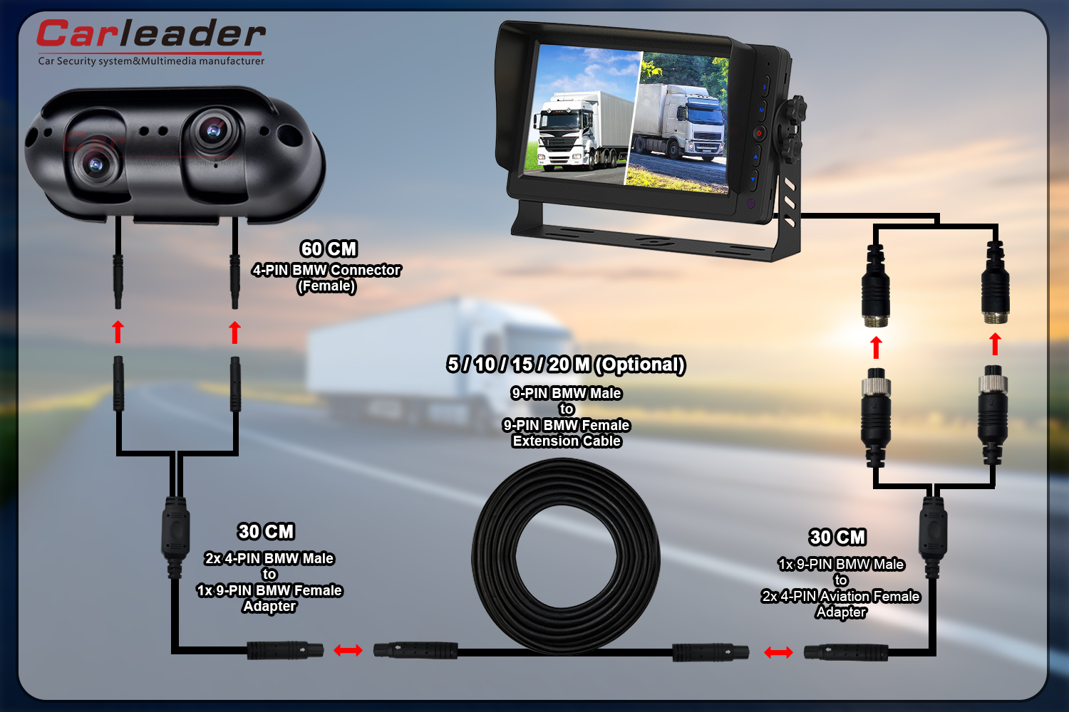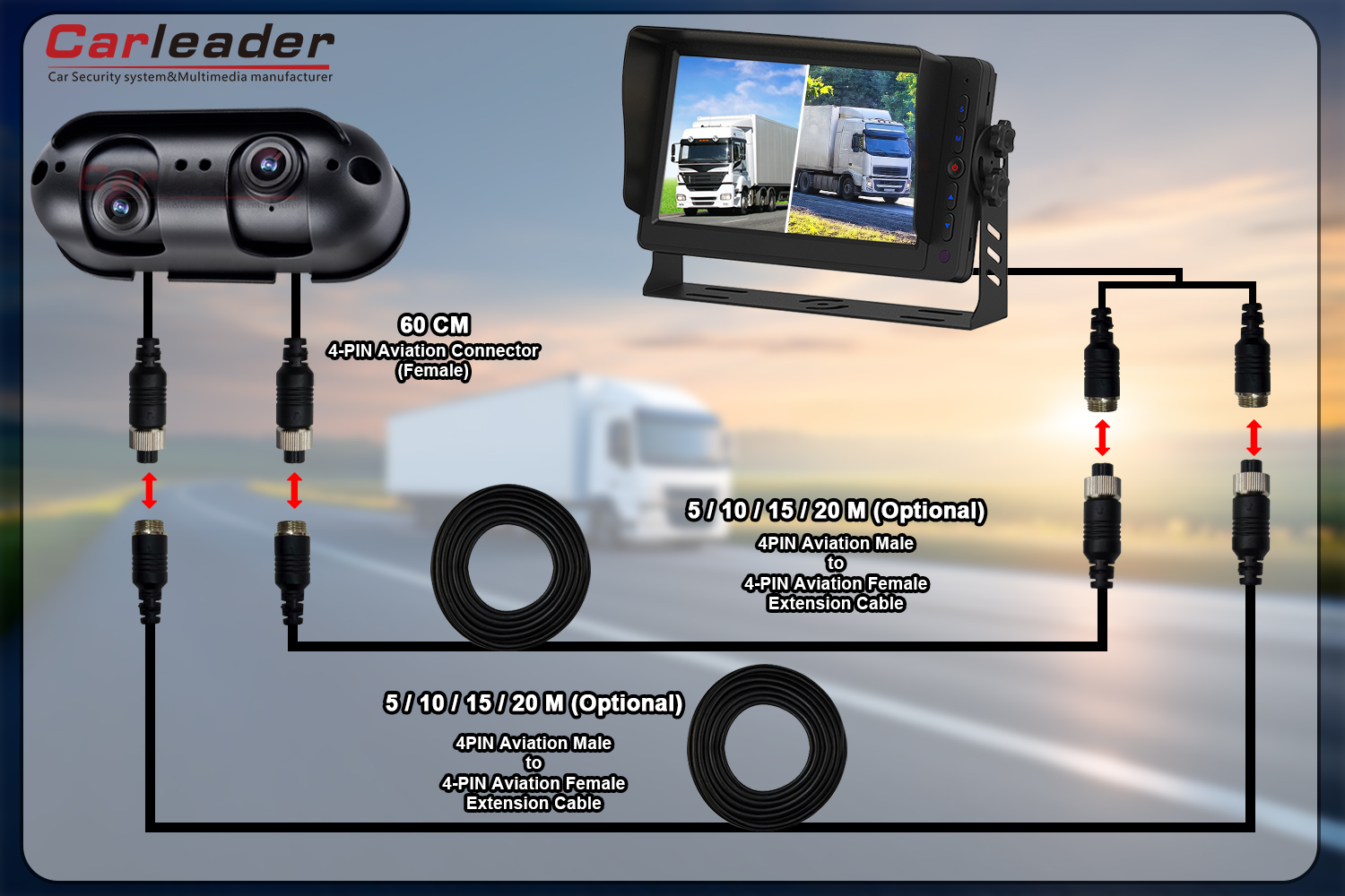 Ledarekommer att erbjuda två olika ledningslösningar för Starlight AHD Dual Lens Heavy Duty backkamera, för att passa olika ledningsbehov: