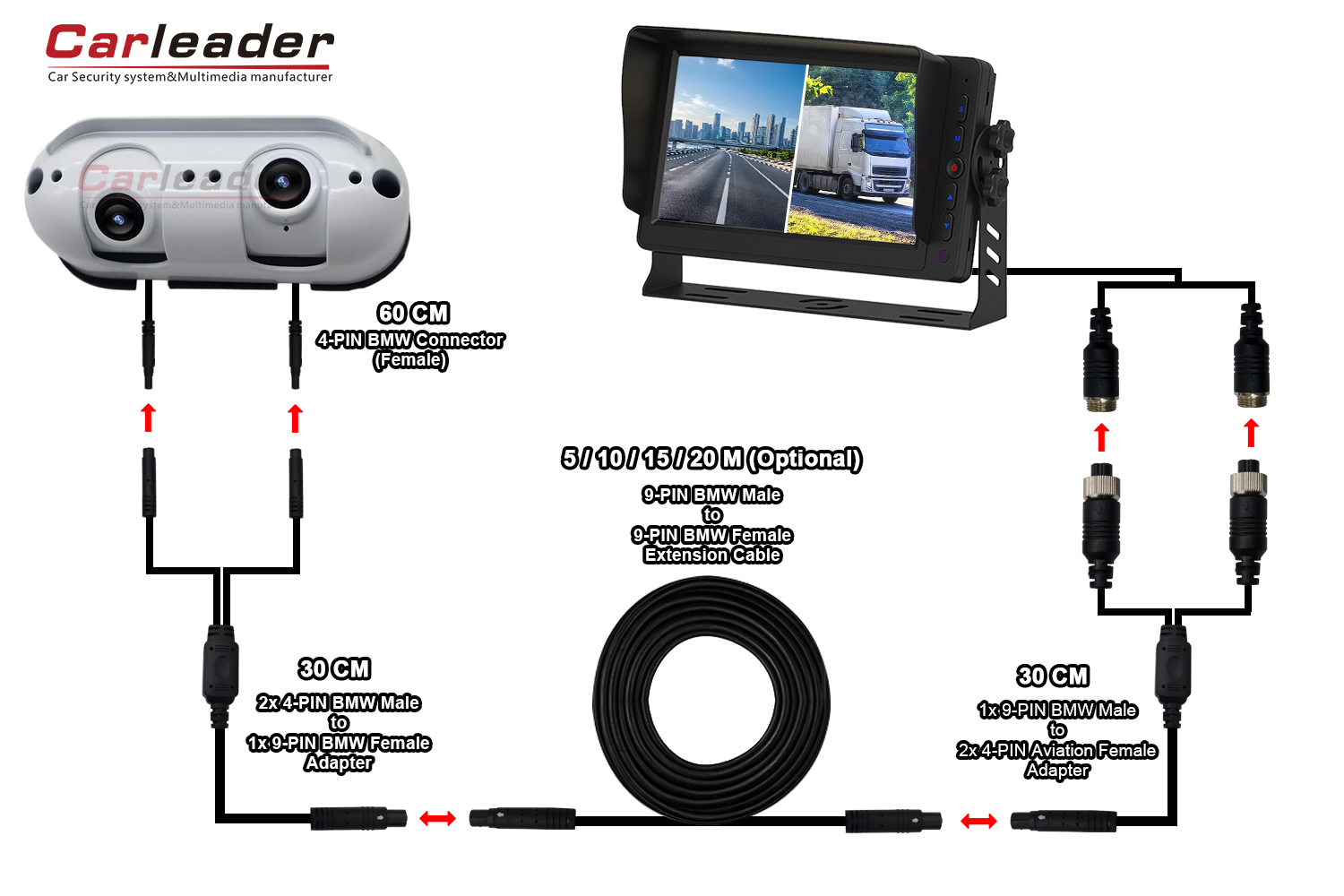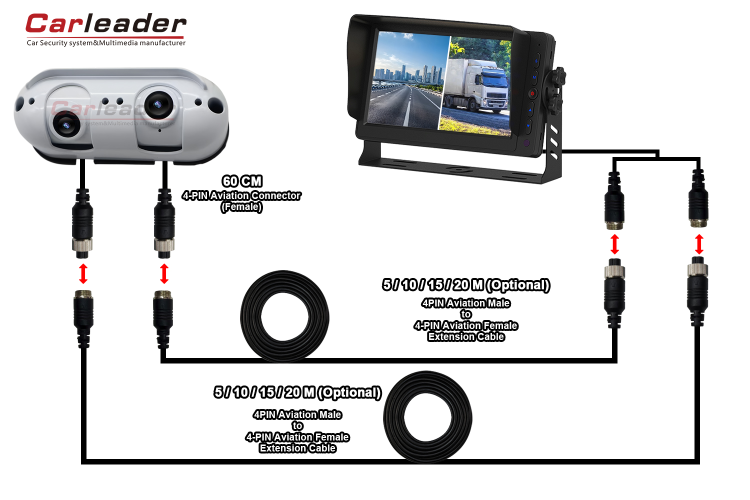 Ledarekommer att erbjuda två olika ledningslösningar för AHD Starlight Dual Lens Heavy Duty backkamera, för att passa olika ledningsbehov: